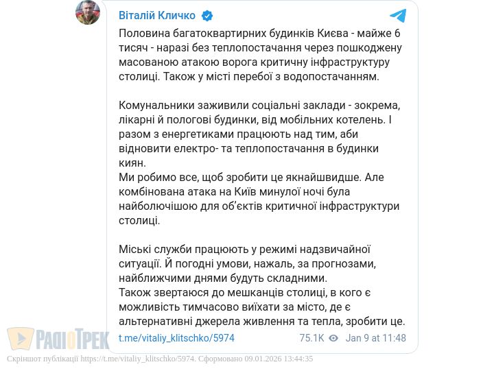 Тим часом мер Києва Віталій Кличко закликав киян за можливості виїхати зі столиці через складну ситуацію у місті.