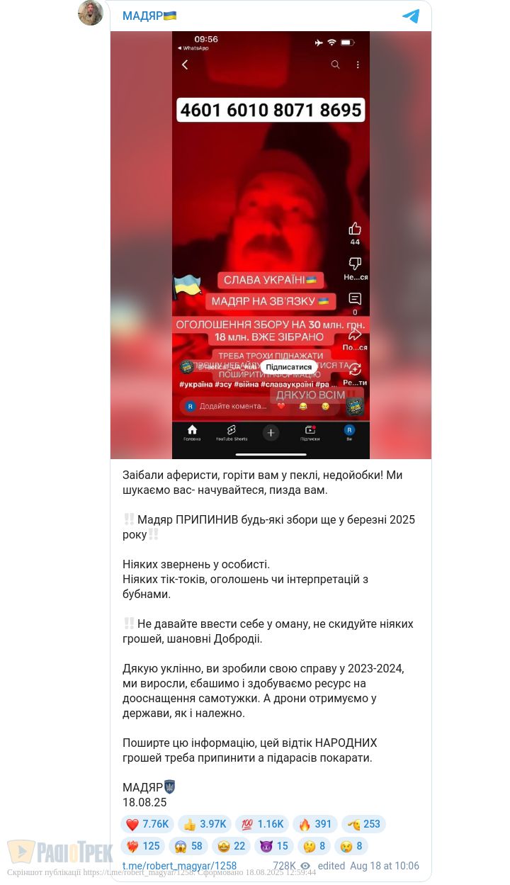 Поки всі чекають на «Овальний кабінет 2», чи оголошення про припинення війни, легендарний «Мадяр» повідомляє про аферистів, які збирають з людей мільйони – від його імені.