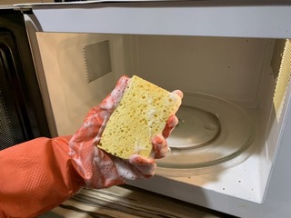Поставте її в мікрохвильовку на 3–5 хвилин, щоб утворилася пара. Вона розм’якшить жир і засохлі плями, пише pixelinform.