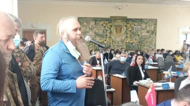 Очолив виступ Сергій Зінич, який на війні в Афганістані повністю втратив зір. Він повідомив, що міський обранець, ветеран АТО, Тарас Обоїста опублікував відео у Фейсбуці і назвав його, ветерана-афганця, «окупантом».
