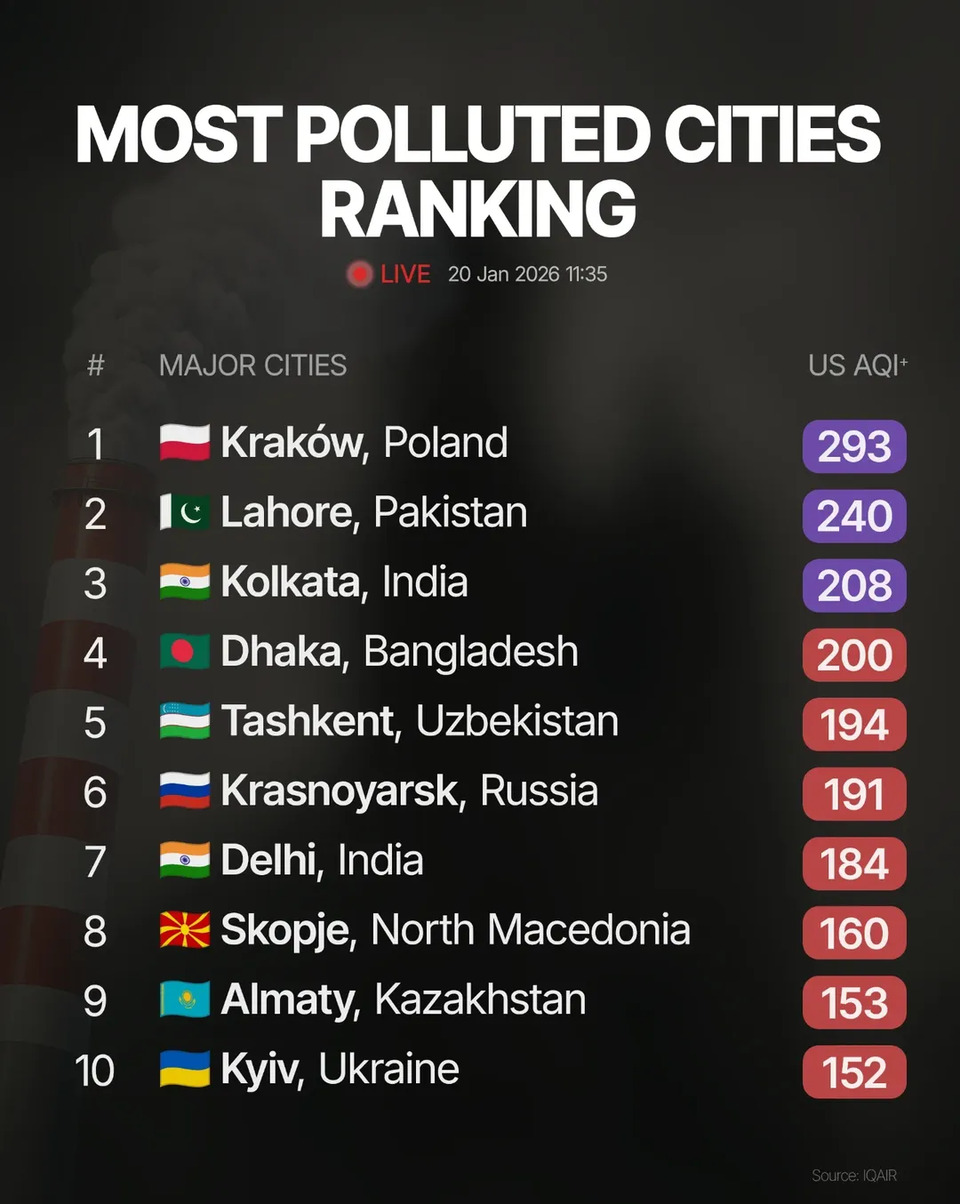 Далі рейтинг найзабрудненіших міст світу виглядає так: