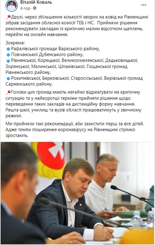 Міносвіти і Міністерство охорони здоров'я прийняли рішення що для очного навчання в кожному конкретному закладі освіти треба 80% викладачів провакцинованих.