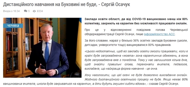 В деяких регіонах чільні посадовці прямо стверджують, що або буде вакциновано 80% вчителів, або (якщо ні), то такий освітній заклад буде закрито БЕЗ права здійснювати онлайн навчання.