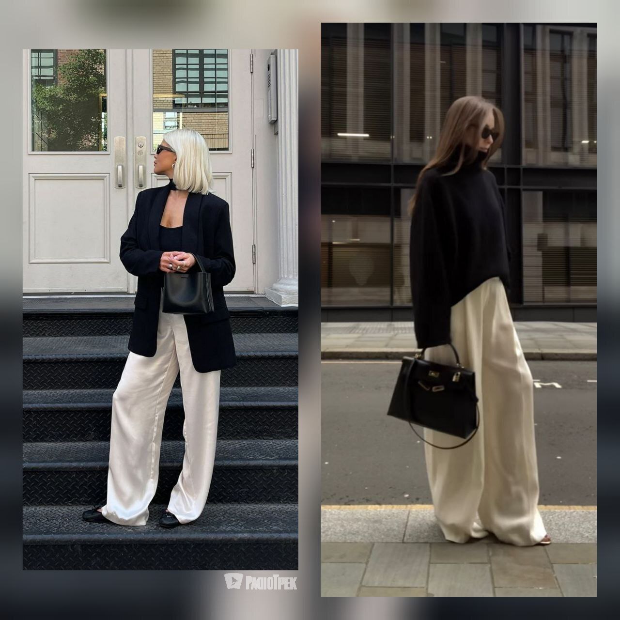 Шкіряні штани мали свій час, ставши символом сміливості та сексуальності, але тепер на зміну їм приходять сатинові варіанти. Легкість і витонченість сатинових штанів додають образам елегантності, роблячи їх ідеальним вибором для стильних луків.