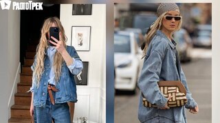 - Денім+денім — поєднуйте джинси з джинсовими сорочками, корсетами чи топами-бандо. Важливо: слідкуйте, щоб відтінки гармонували.