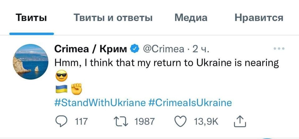 «Моє повернення наближається»: Twitter-акаунт Криму підтримав Україну