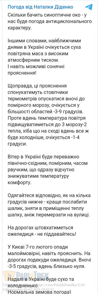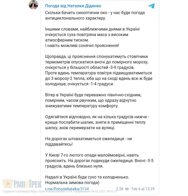 Однак вже вдень температура повітря підвищуватиметься до -3…+2 градусів. На Сході буде холодніше, очікується до -1…-4 градусів.