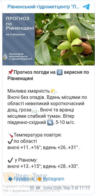 Може накрапати вранці: Прогноз погоди на 4 вересня на Рівненщині