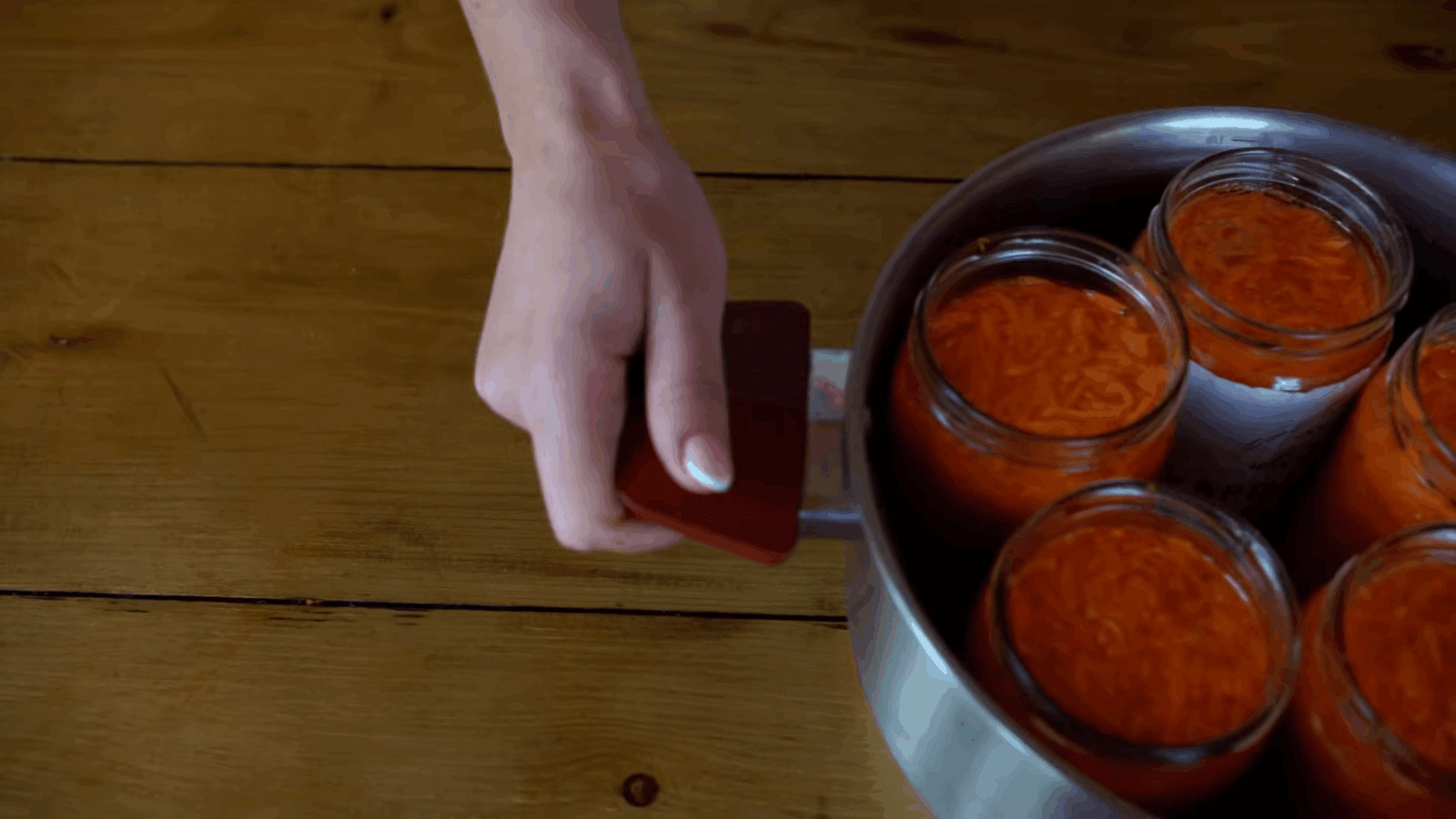 Налийте в каструлю воду по плечики банок і поставте на середній вогонь. Після закипання води стерилізують банки 40 хвилин.
