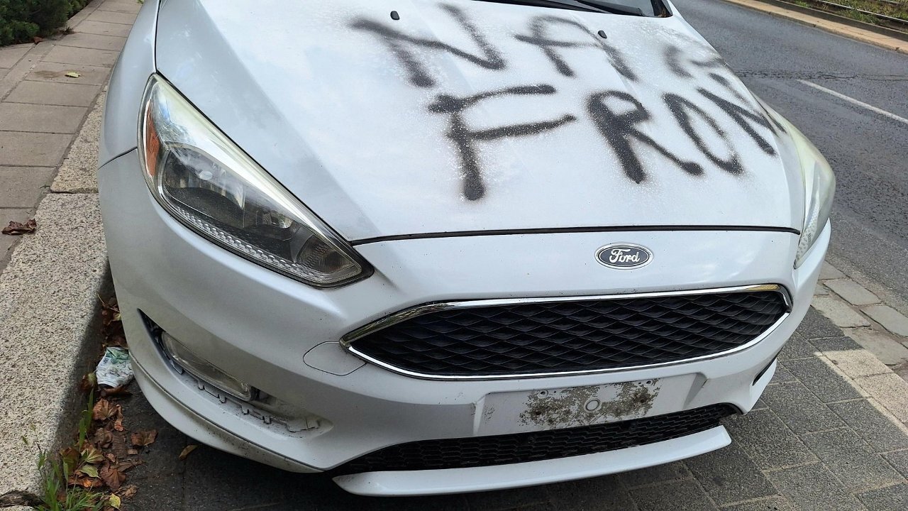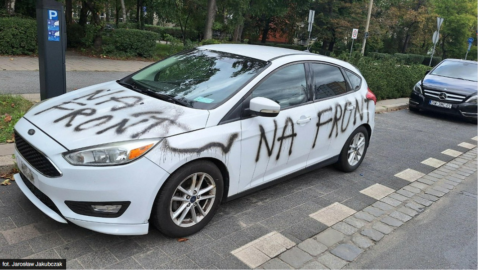 Невідомий зловмисник викрав номерні знаки з автомобіля з українськими номерами та написав фарбою з балончика напис «На фронт!» на білому кузові транспортного засобу, - повідомляє Gazeta Wrocławska.