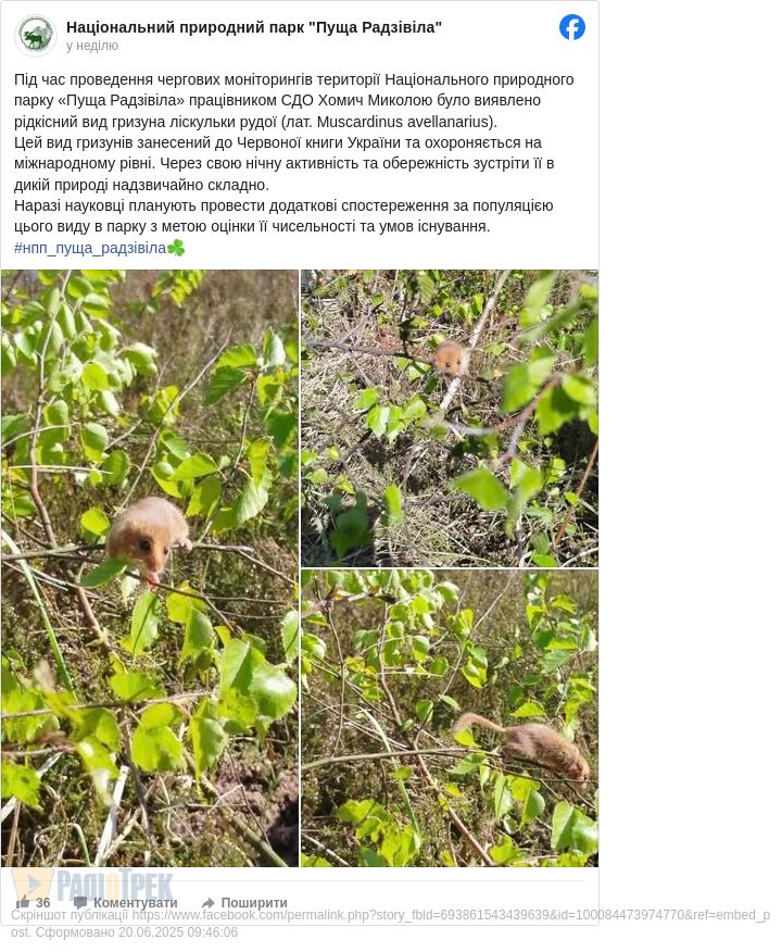 Днями один з працівників Національного природного парку «Пуща Радзівіла» знайшов рідкісного гризуна.
