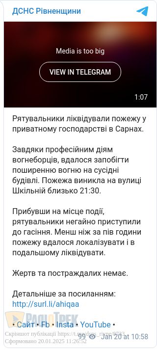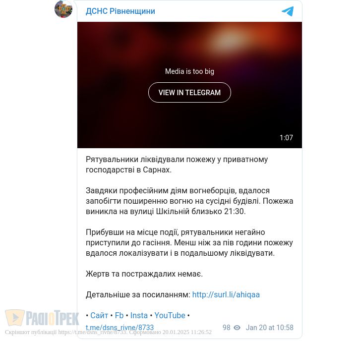 Пожежа, через яку частина міста залишилася без світла, напередодні сталася у Сарнах.