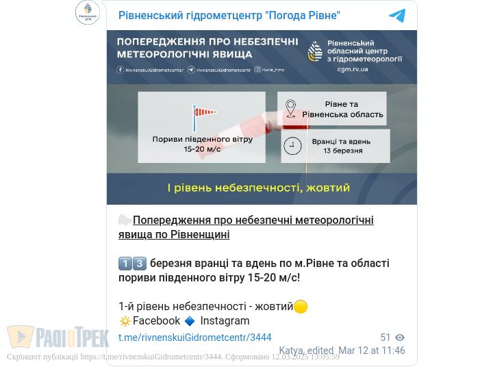Завтра, 13 березня, на Рівненщині очікується вітряна погода.
