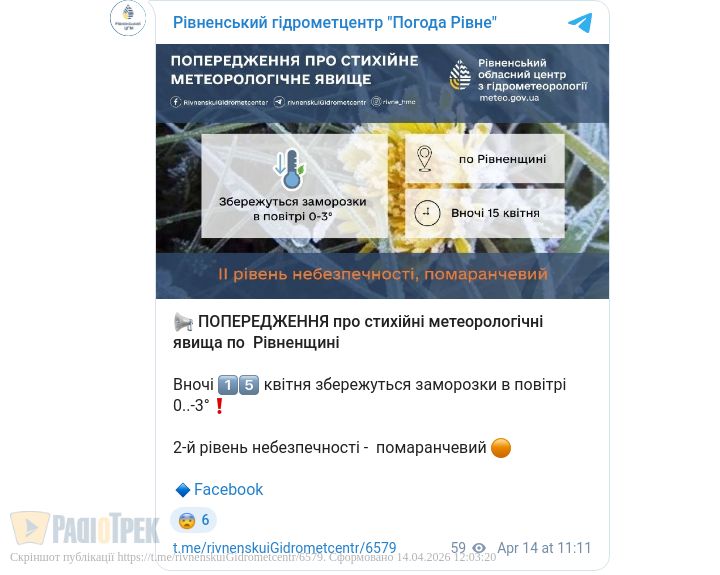 В повітрі буде до -3 градусів, повідомили у Рівненському обласному гідрометцентрі.