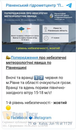 Завтра, 17 червня, у Рівному та області буде хмарно з проясненнями.