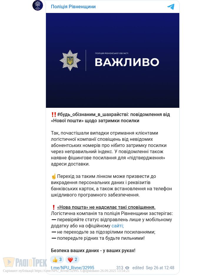 На Рівненщині попередили про нову схему шахрайства від імені «Нової пошти»