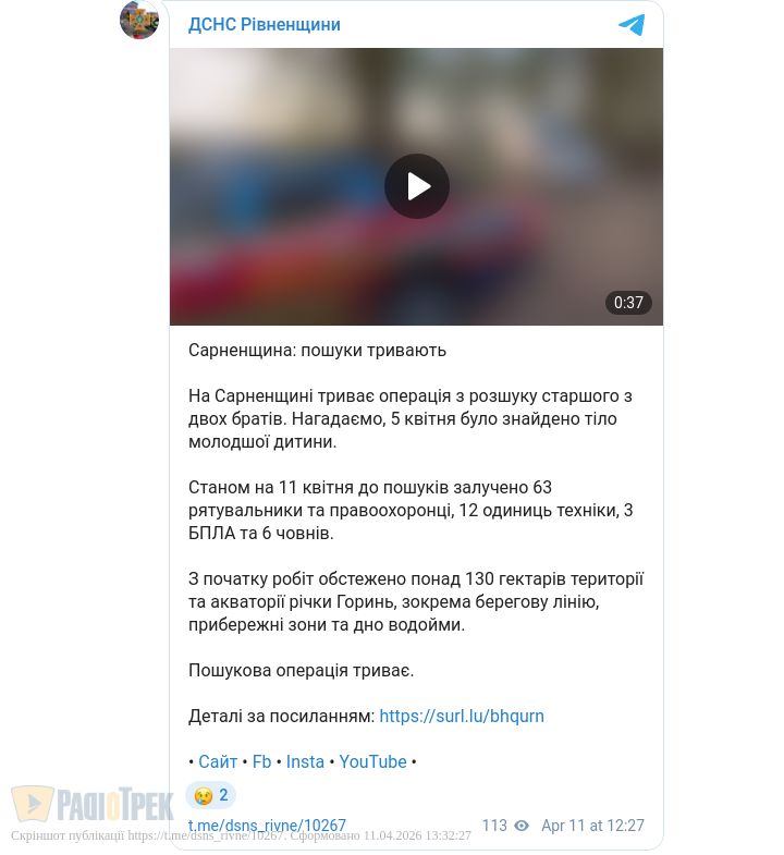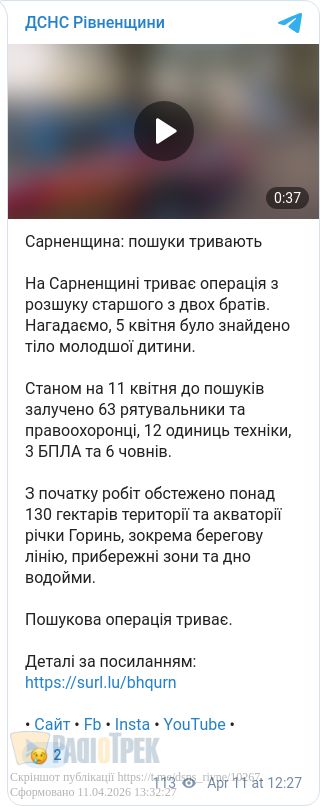 На Рівненщині сьому добу тривають пошуки 4-річного Дмитра: його 2-річний брат загинув