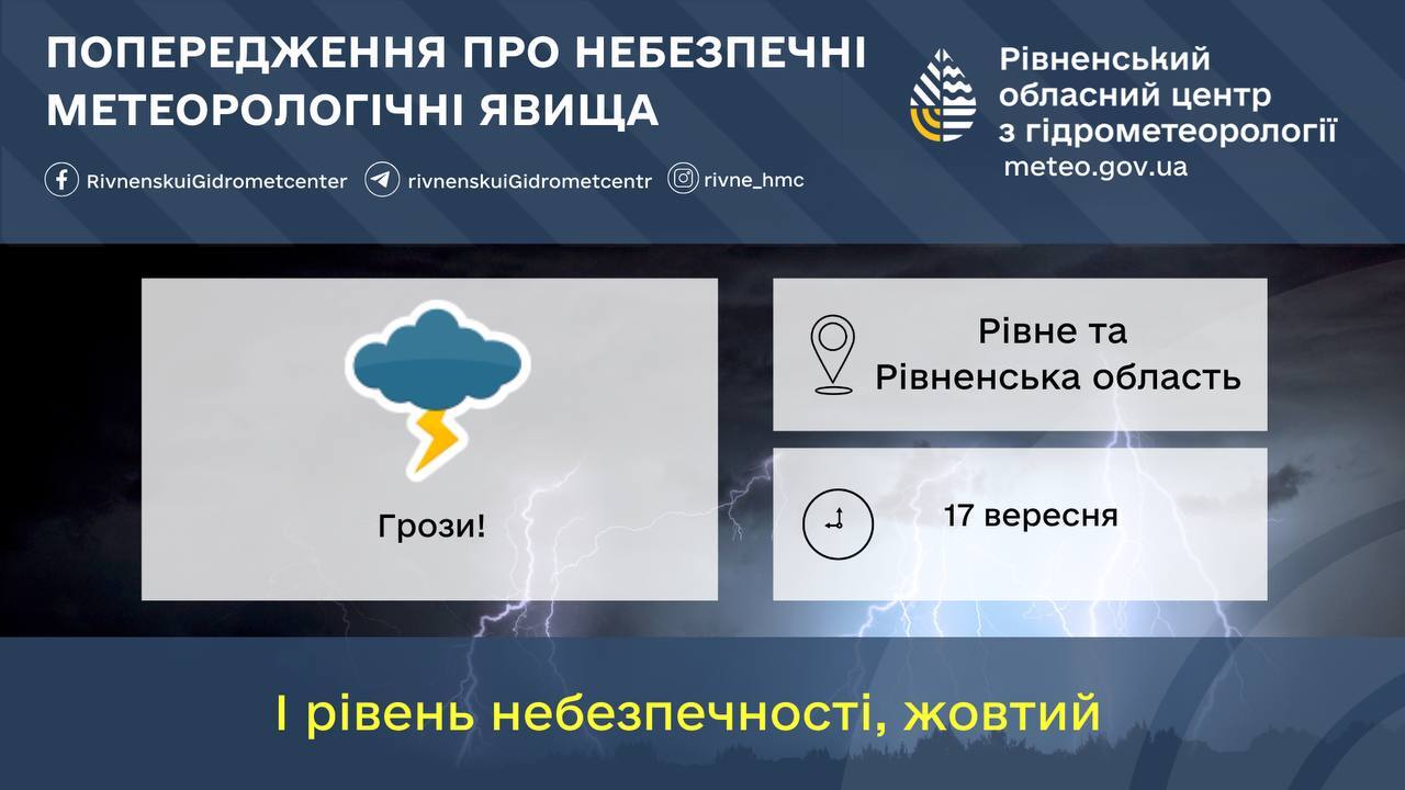 Рекомендується бути обережними, стежити за оновленнями погоди та за можливості уникати перебування на відкритих територіях під час грози.