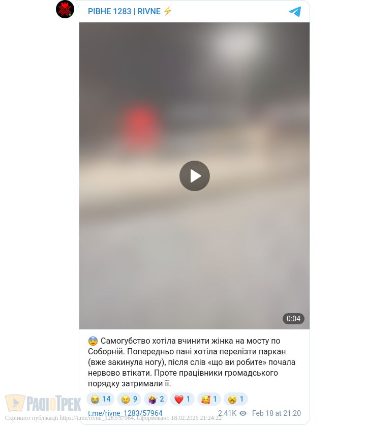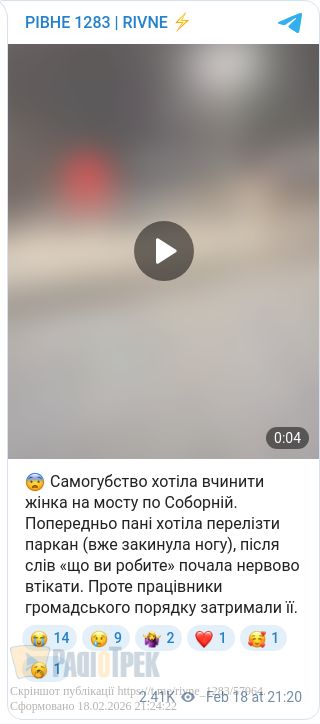У центрі Рівного працівники громадського порядку запобігли ймовірній спробі самогубства жінки на мосту по вулиці Соборній.