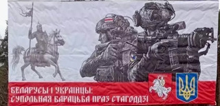 Банер, який нагадує білорусам про спільну з українцями боротьбу упродовж століть, з'явився на українсько-білоруському кордоні біля пункту пропуску Городище у Рівненській області.