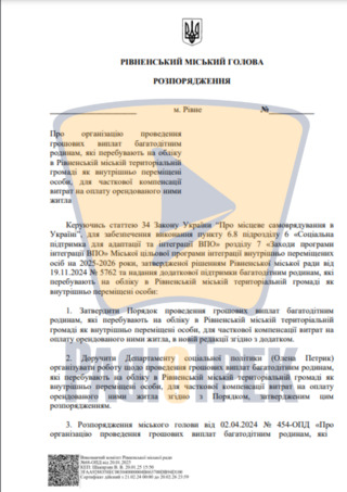 Багатодітні родини з-поміж ВПО, які проживають у Рівному - можуть отримати компенсацію на оплату орендованого житла.