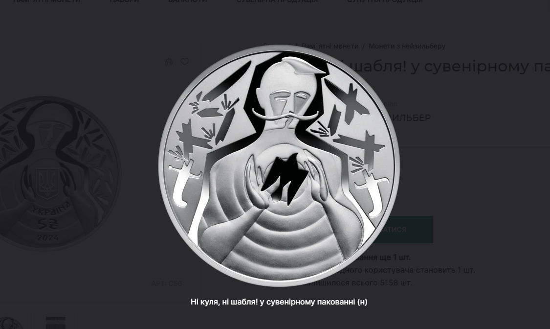 Пам'ятні монети «Ні куля, ні шабля!». у фірмовому пакуванні вже можна придбати в інтернет-магазині нумізматичної продукції НБУ. Ціна – 161 грн. Також, повідомляли раніше в Нацбанку, вони будуть доступні у банках-дистриб'юторах: