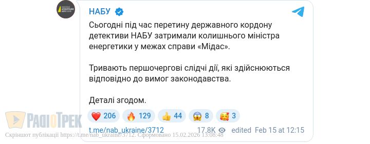 У НАБУ офіційно підтвердили затримання. Там заявили, що ексміністра затримали в межах справи «Мідас». Наразі тривають першочергові слідчі дії.