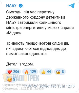 - Операція «Мідас» стосується масштабної корупційної схеми в енергетичній сфері, зокрема можливого впливу на НАЕК «Енергоатом». Розслідування триває.