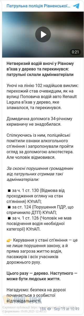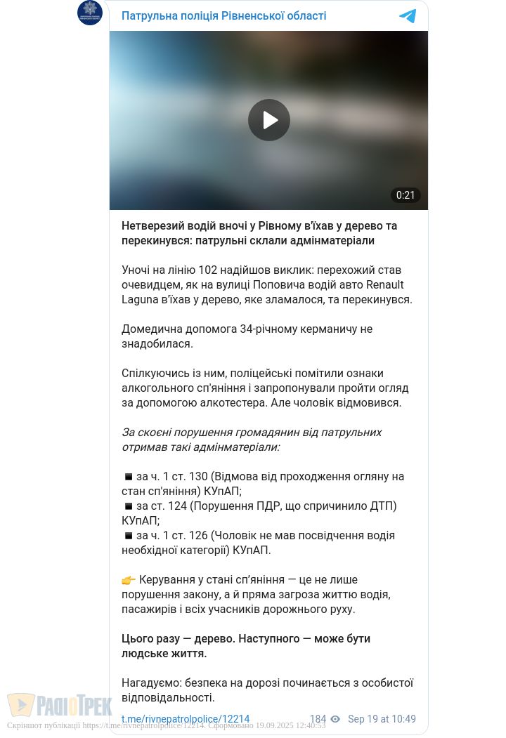 34-річний керманич не постраждав та від медичної допомоги відмовився.