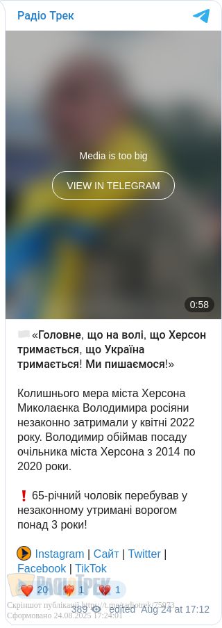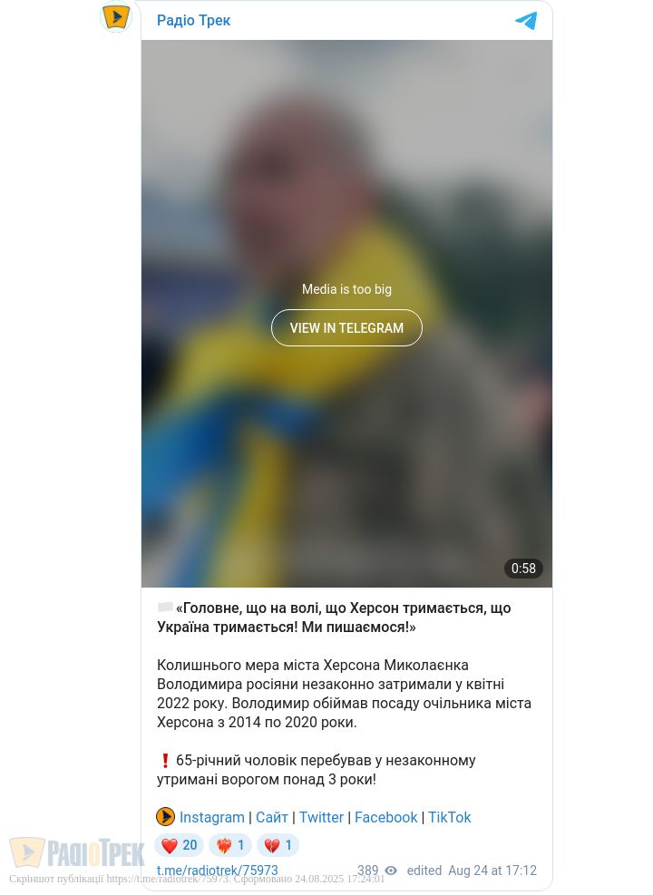А також мера Херсона Володимира Миколаєнка. Військові рф викрали його 18 квітня 2022 року.