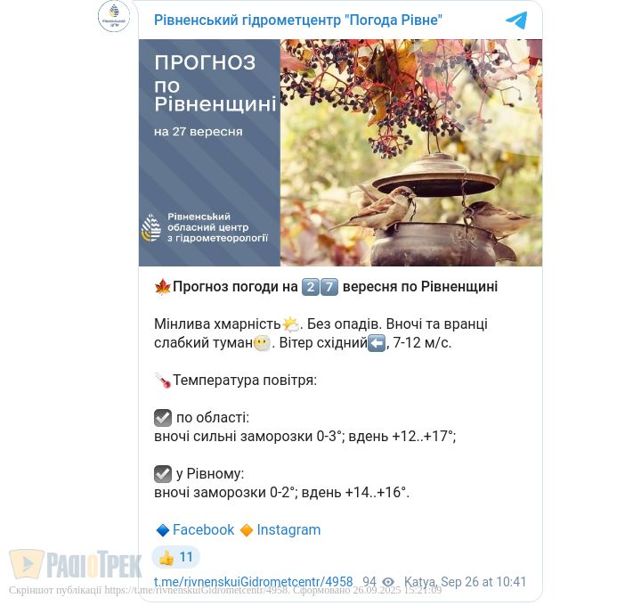 - по області: вночі можливі сильні заморозки 0–3°, вдень +12…+17°.