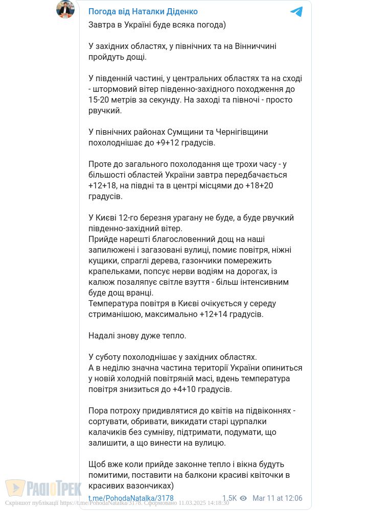 Пора потроху придивлятися до квітів на підвіконнях – сортувати, обривати, викидати старі цурпалки калачиків без сумніву, підтримати, подумати, що залишити, а що винести на вулицю, – зауважила синоптик.