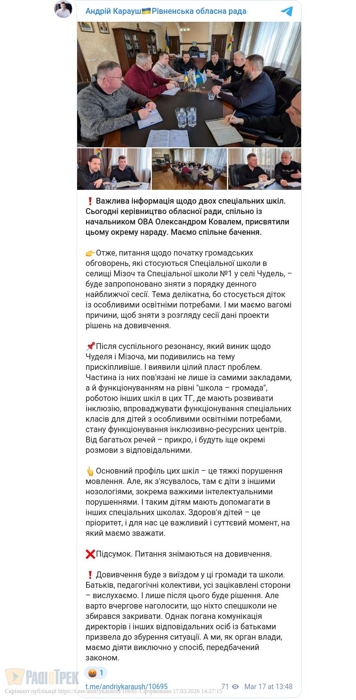 Нагадаємо, Радіо Трек було одним із перших ЗМІ, яке оприлюднило ситуацію про можливу ліквідацію закладів для дітей з особливими освітніми потребами.