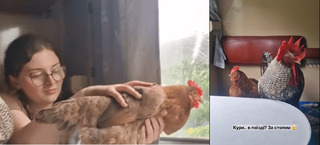 Мешканка Львова Оксана здивувала соцмережі історією про подорож в купе зі своїми домашніми улюбленцями. З’ясувалось, що це не кіт або собака, а домашні півень та курка.