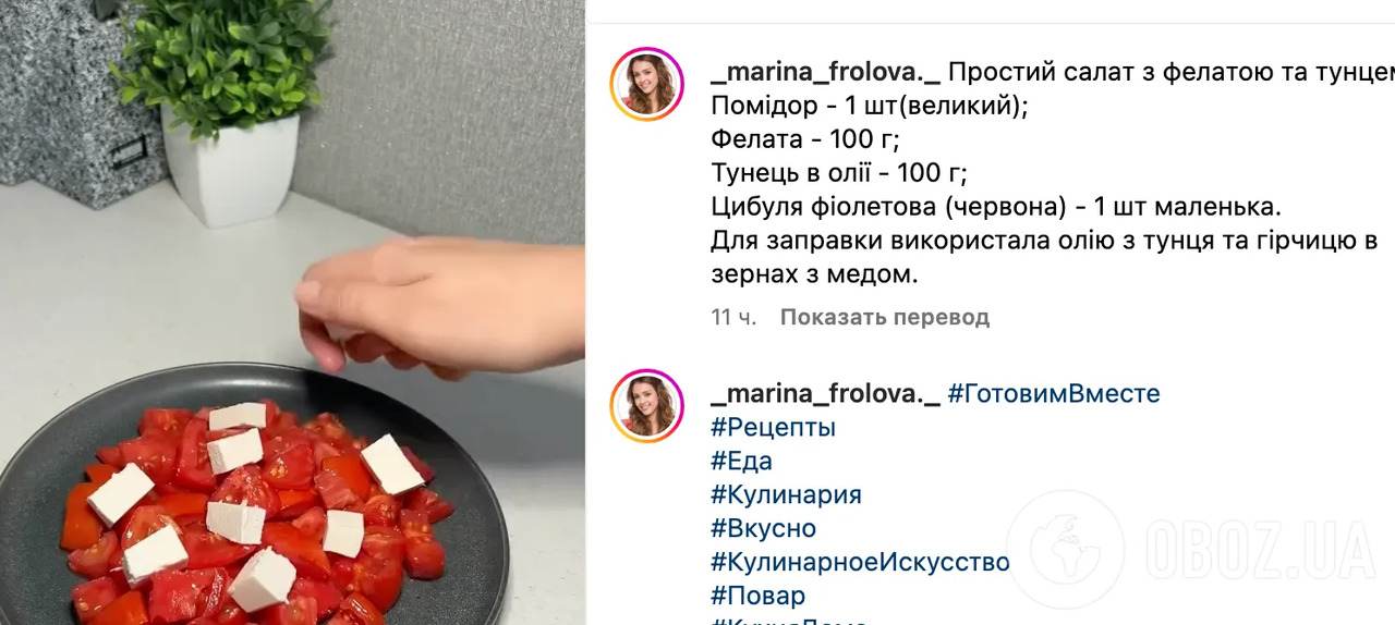 Кулінарка поділилася в Instagram рецептом дуже смачного та легкого салату з помідорами, сиром та тунцем.