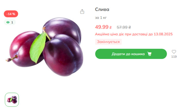 У різних магазинах ціни на сливи коливаються від 39 до 70 гривень за кілограм. Завдяки цьому сливи залишаються доступними для широкого кола споживачів.
