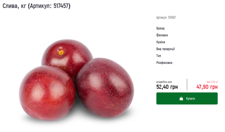 Ціни на сливи в супермаркетах