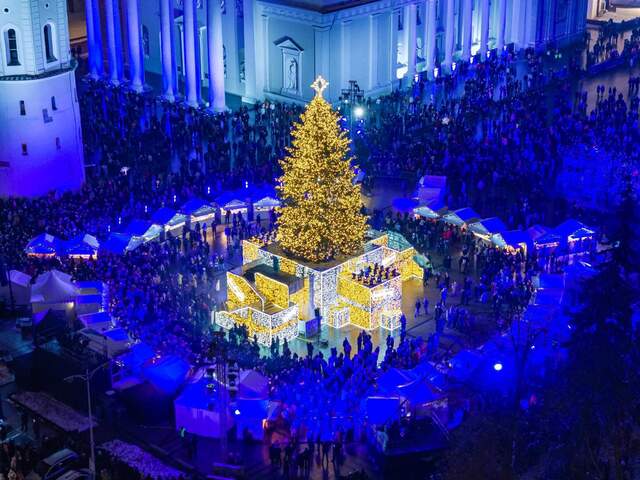 Того ж вечора відкривається головний Різдвяний ярмарок Вільнюса. Його дерев’яні будиночки розкидані довкола собору й уздовж старовинних вуличок Старого міста, який входить до списку Світової спадщини ЮНЕСКО.