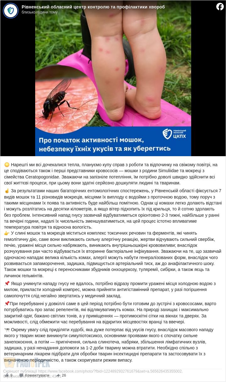 Небезпечні мошки: На Рівненщині стартував сезон кровопивць