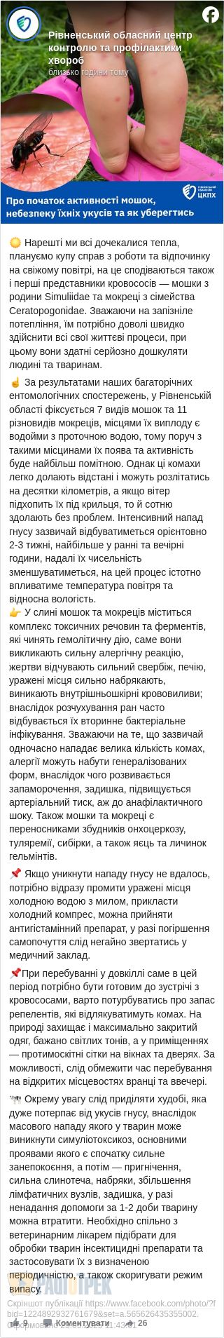 Сезон активності мошок стартував на Рівненщині.