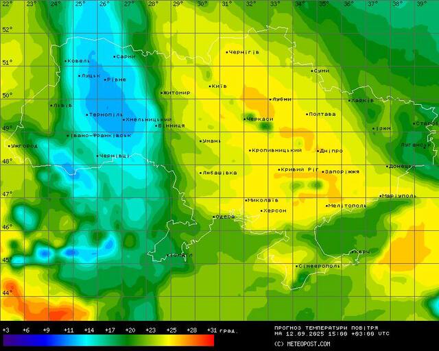 - а в західних областях прохолодніше — +16…+19°, місцями до +25°.