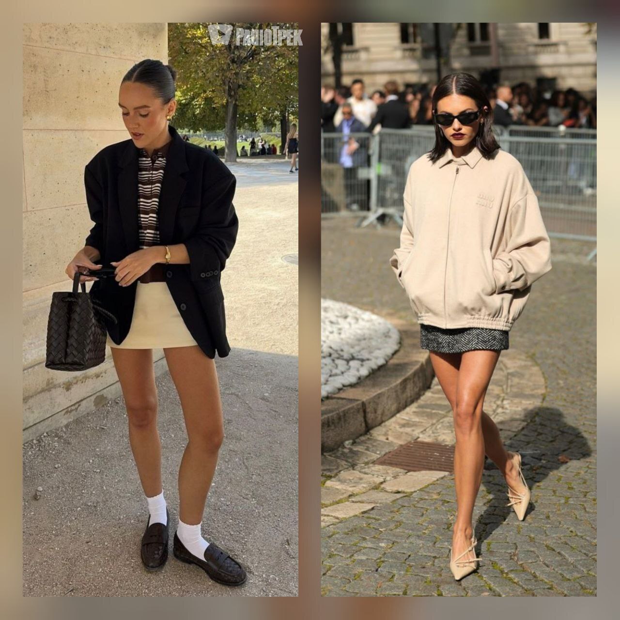 Балонні силуети, жорсткі форми, візуальна драма — такі міні для тих, хто не боїться заявити про себе. А базова футболка або сорочка допоможе збалансувати образ.
