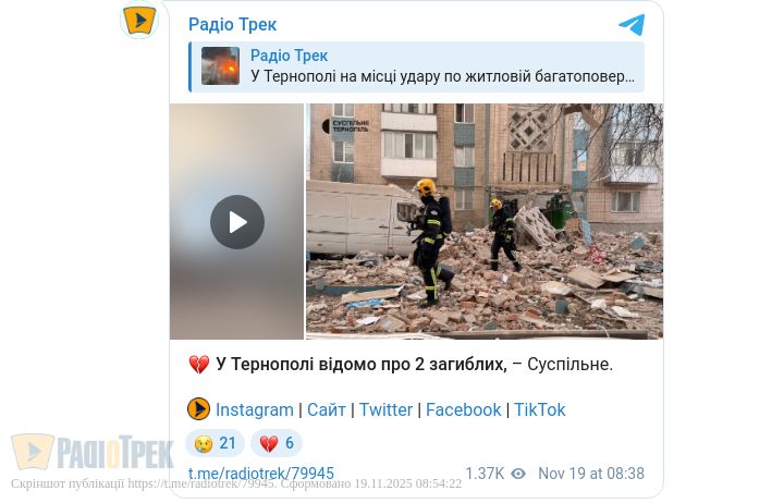 - Тернопіль: росіяни вдарили по житлових будинках. Відомо про двох загиблих