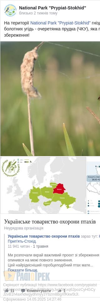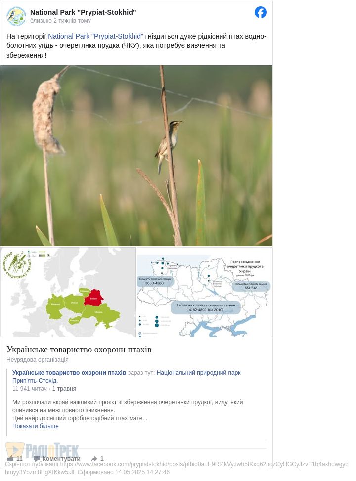 На території Нацпарку «Прип’ять – Стохід» на Волині, яка межує з Рівненщиною, гніздиться птах очеретянка прудка.