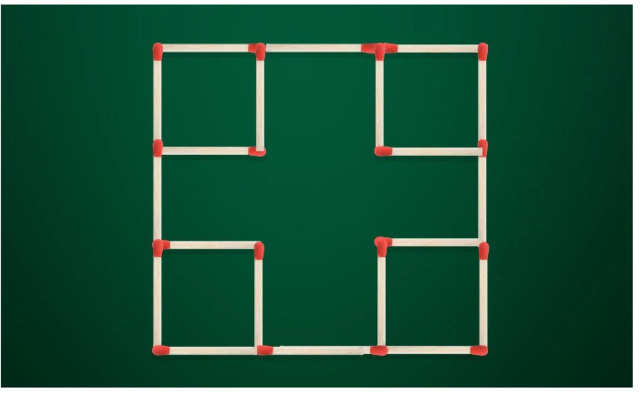 На зображенні вище 20 сірників утворюють п’ять квадратів.