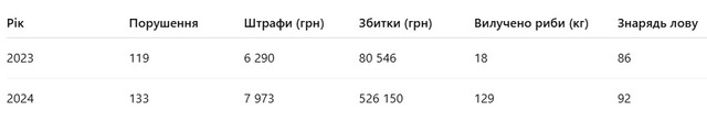 Окрім збільшення кількості порушень, суттєво зросли й збитки. Якщо у 2023 році сума нарахованих збитків становила 80 546 гривень, то у 2024 році — вже понад 526 тисяч гривень.