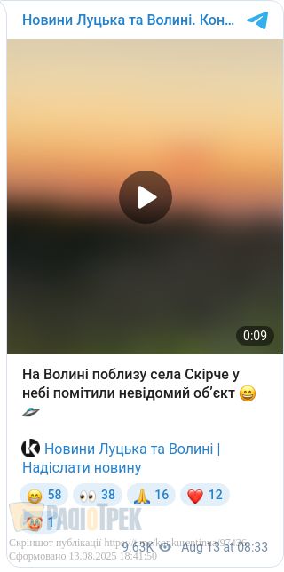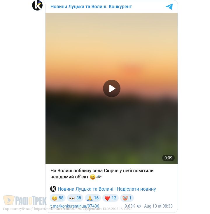 Поблизу села Скірче, що на Волині, яка межує з Рівненщиною, місцеві жителі помітили ніби-то невідомий обʼєкт.