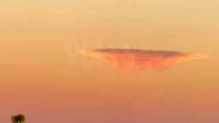 Йдеться про незвичну форму хмари, яка підсвічена променями вечірнього сонця. Деякі люди вже почали жартувати, що це було НЛО.