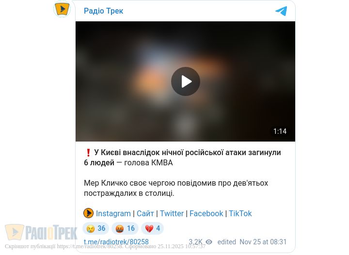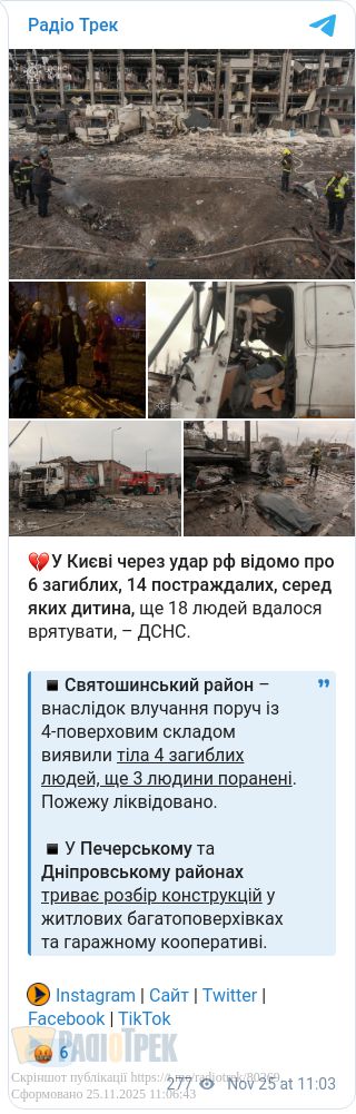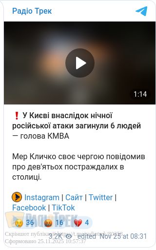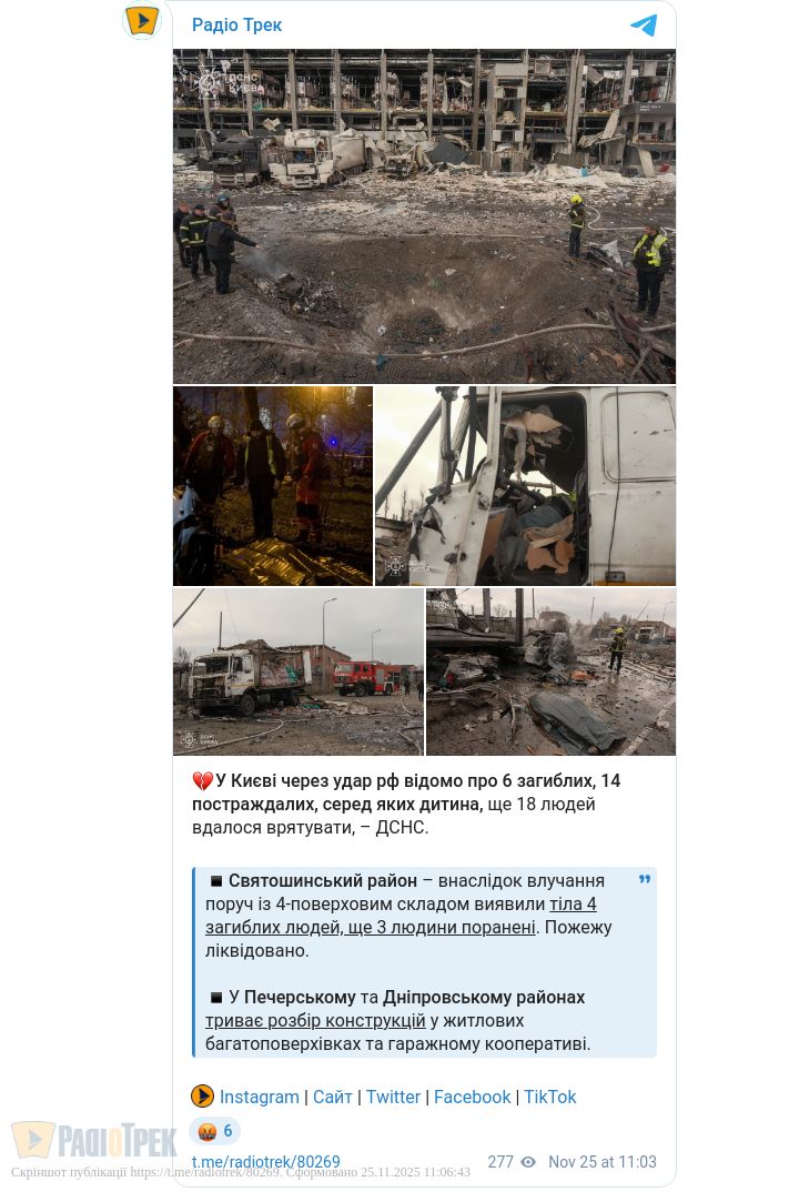 У ніч проти 25 листопада росія знову влаштували комбіновану ракетно-дронову атаку Києва. Про це пише ТСН.