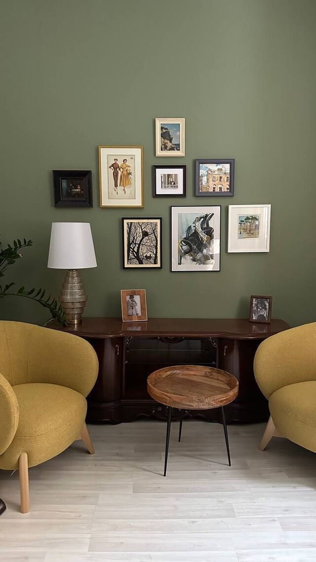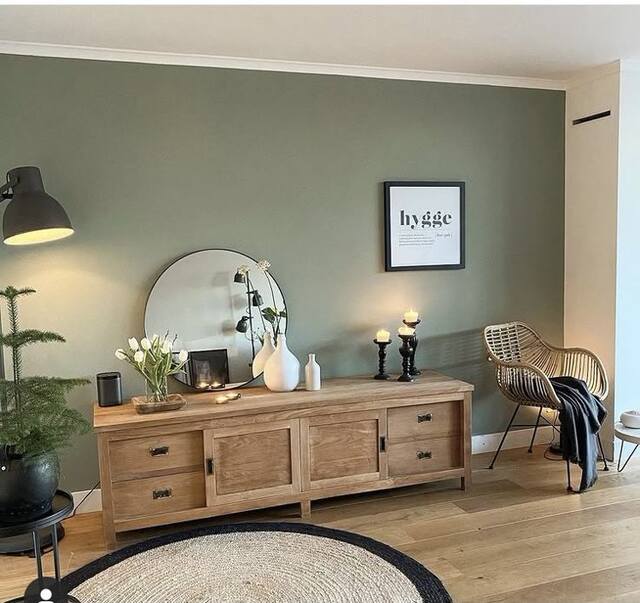 Це не один конкретний колір, а група приглушених, землистих зелених відтінків — шавлієвий, оливковий, розмариновий. Він одночасно стриманий і живий, ідеально поєднується з натуральними матеріалами, деревом, каменем, текстилем.